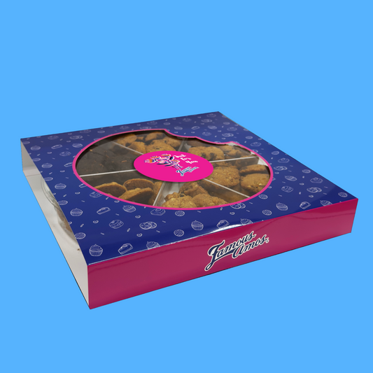 Famous Amos Party Packs are here to make your birthday parties, gender reveal celebrations, office lunches and family picnics delicious. With an irresistible assortment of cookies, brownies and bite-sized cakes, our platters are designed to delight every guest.